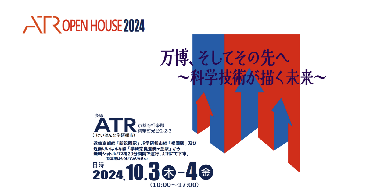 ATR OPEN House 2024 2024-10-08 Last updated : 2025-09-29 ITBインタラクション技術バンク The ATR Open Day took place on 3rd and 4th October 2024. We would like to thank everyone who showed an interest. We look forward to your continued support!